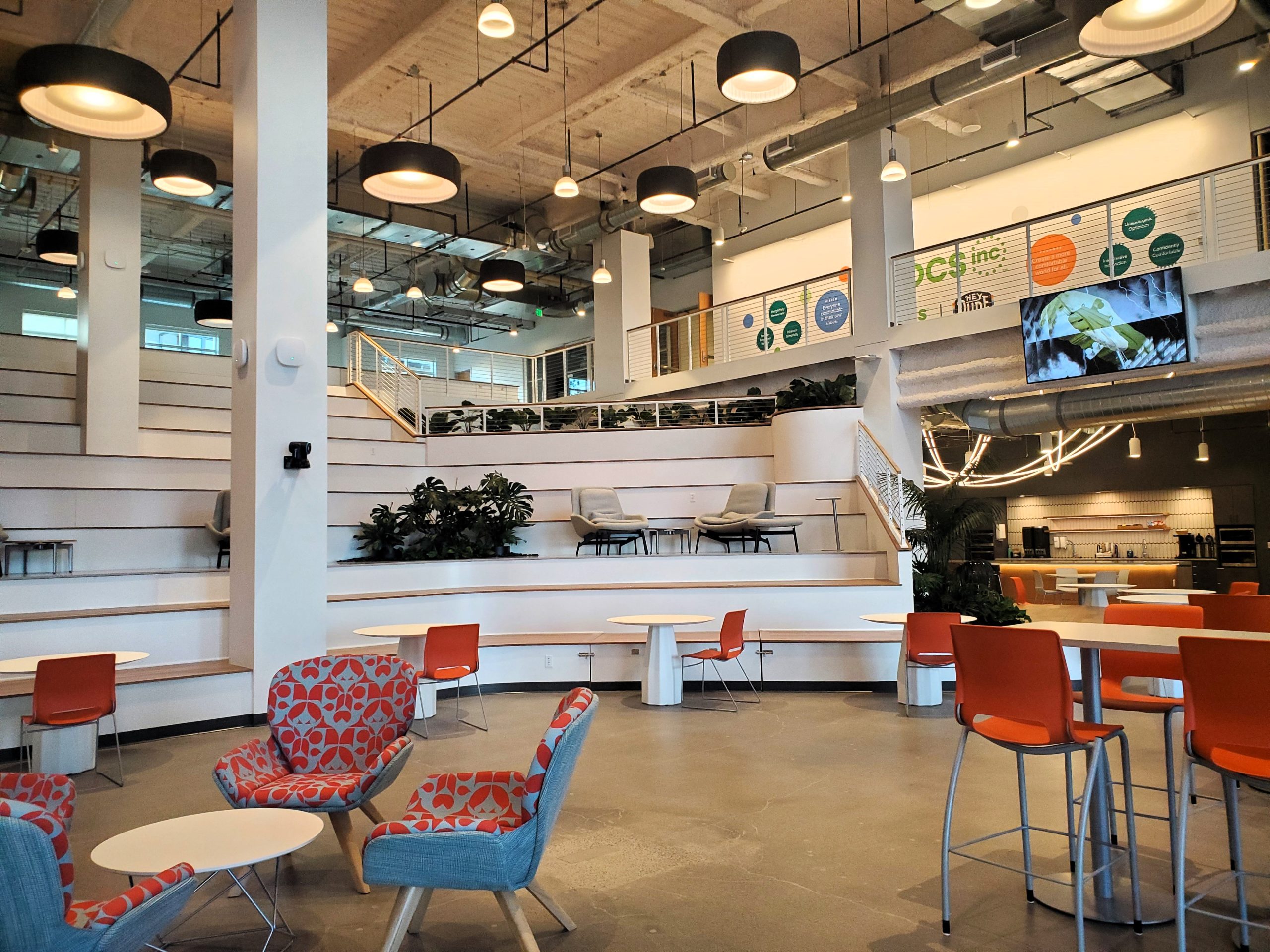 - A key challenge was transforming a traditional 2000’s office with lay-in ceilings into Crocs’ preferred open, industrial-style workspace with exposed structure and ductwork