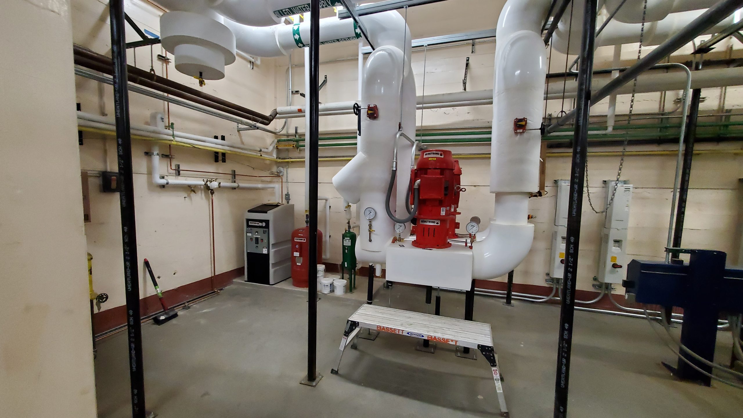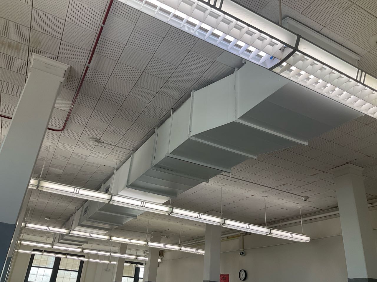 • Mechanical upgrades: full building air conditioning with air-cooled chiller, two distribution pumps, new Rooftop Units (RTUs) for gymnasiums and cafeteria, and replacement fan coil units with chilled water coils