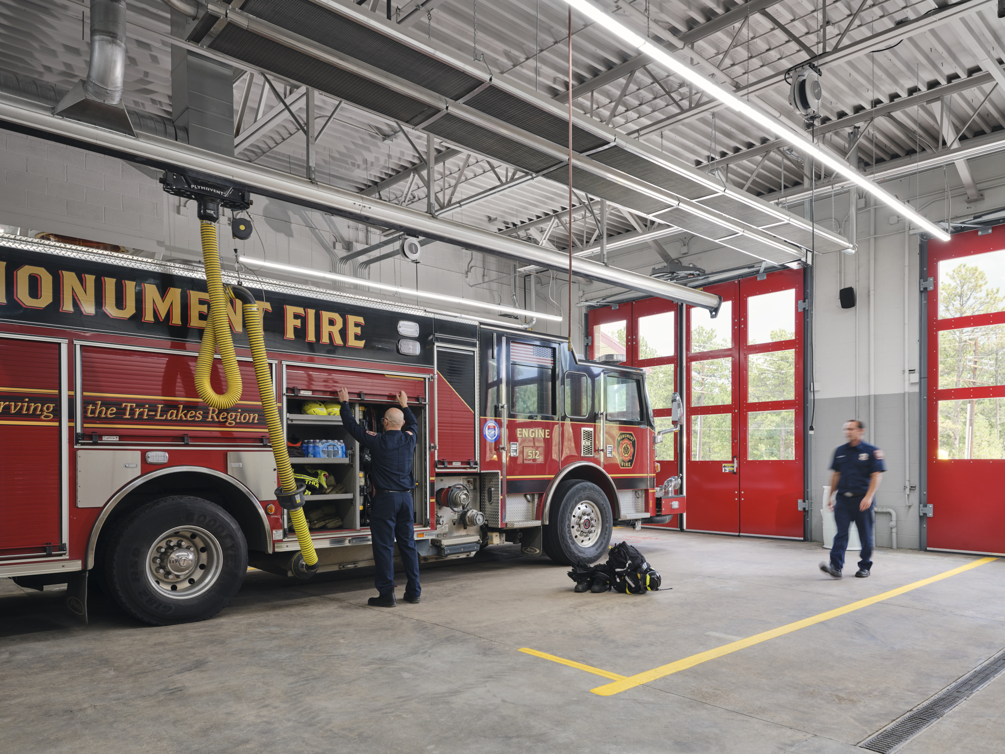 • Health and safety upgrades: added dedicated decontamination and locker rooms, separated from the apparatus bay to improve firefighter health and contaminant control