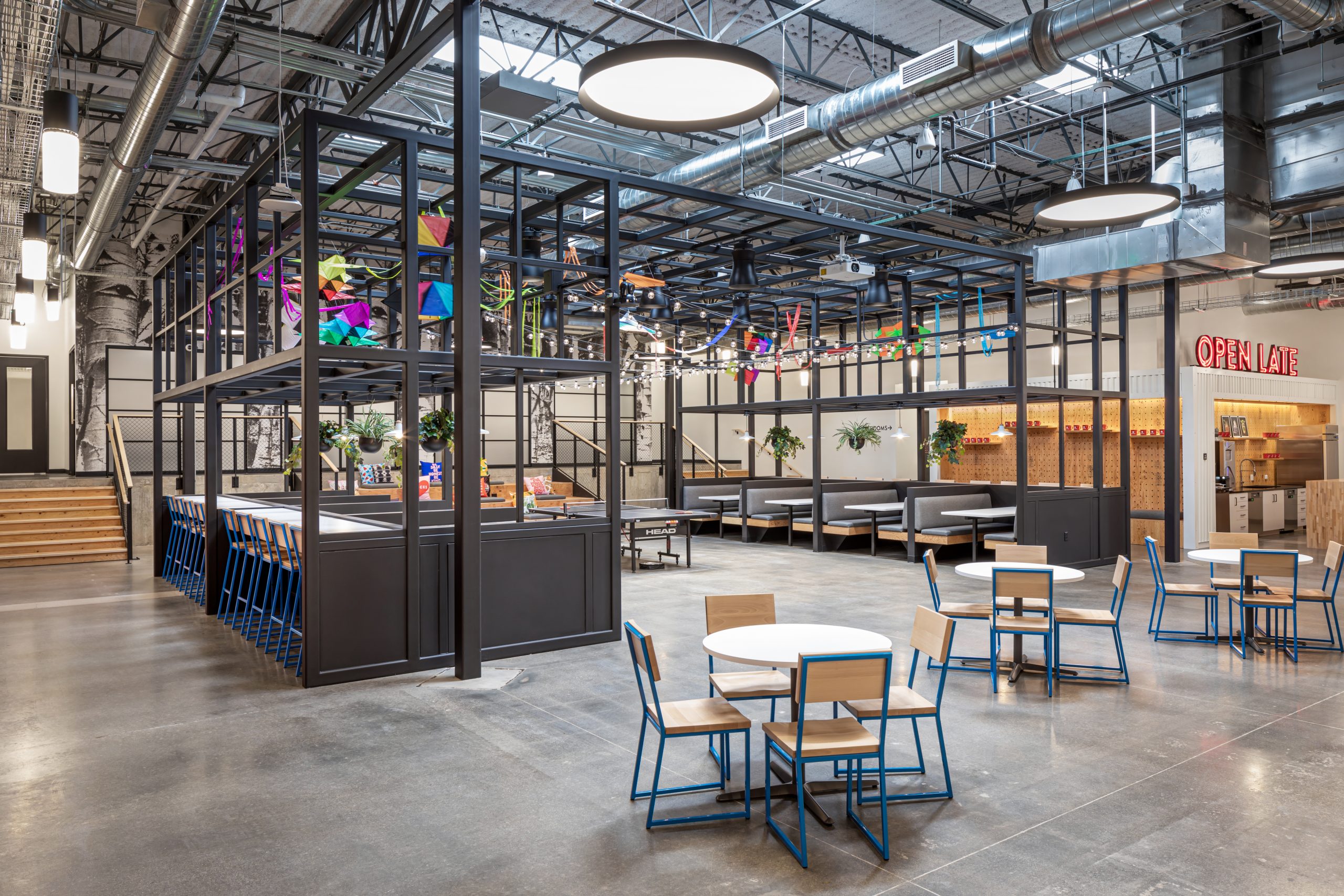 - Complex program fit-out beyond a typical office, including training, collaboration, dining, and amenity spaces