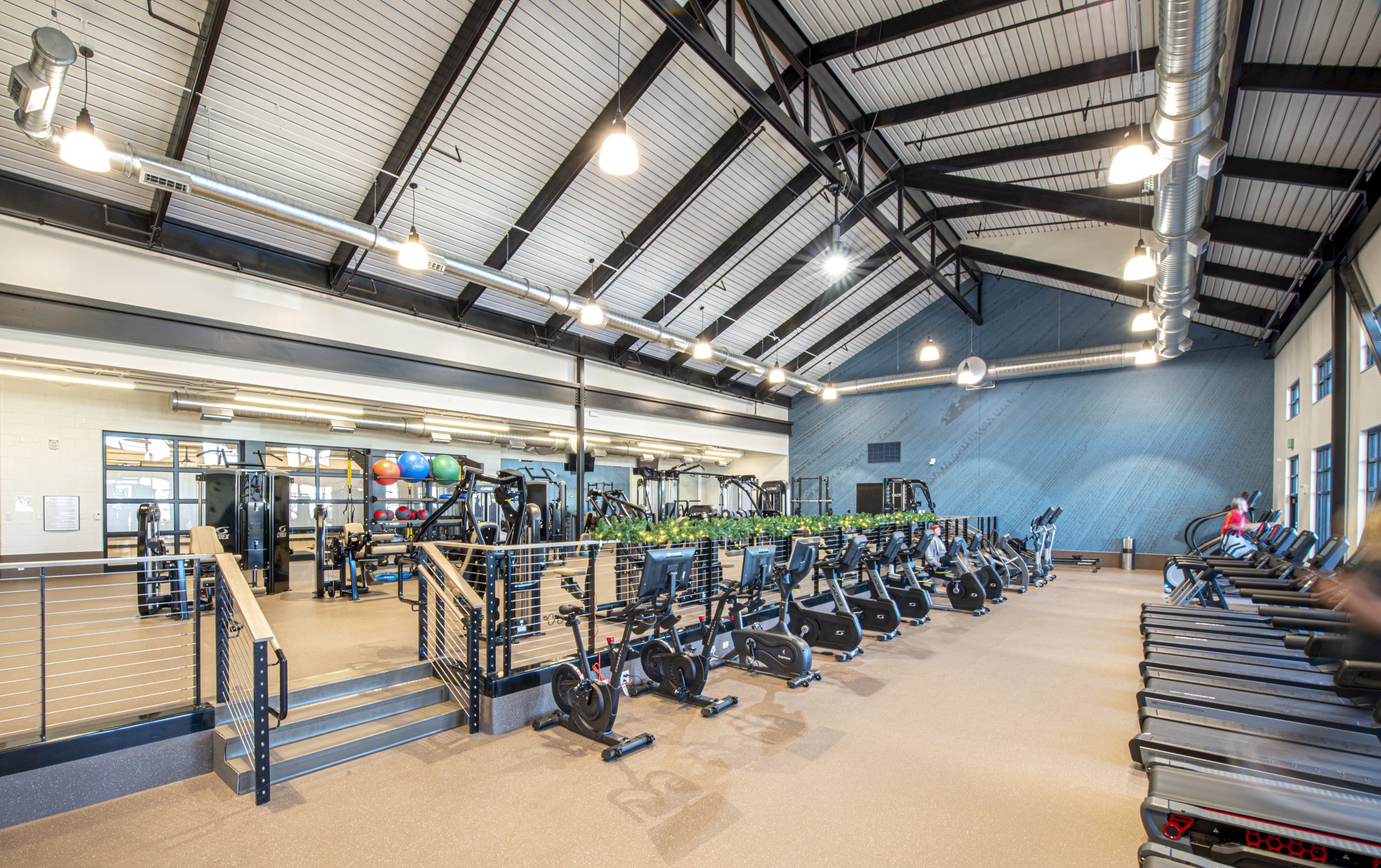• Mechanical systems solution: mixed system approach, including single-zone Variable Air Volume (VAV) rooftop units for gym and fitness areas, natatorium air-handling unit with energy recovery and dehumidification, corrosion-resistant fans for pool chemical storage, energy recovery unit for the locker rooms, fan-powered and shut-off VAV boxes fed by rooftop units serve the remainder of the spaces