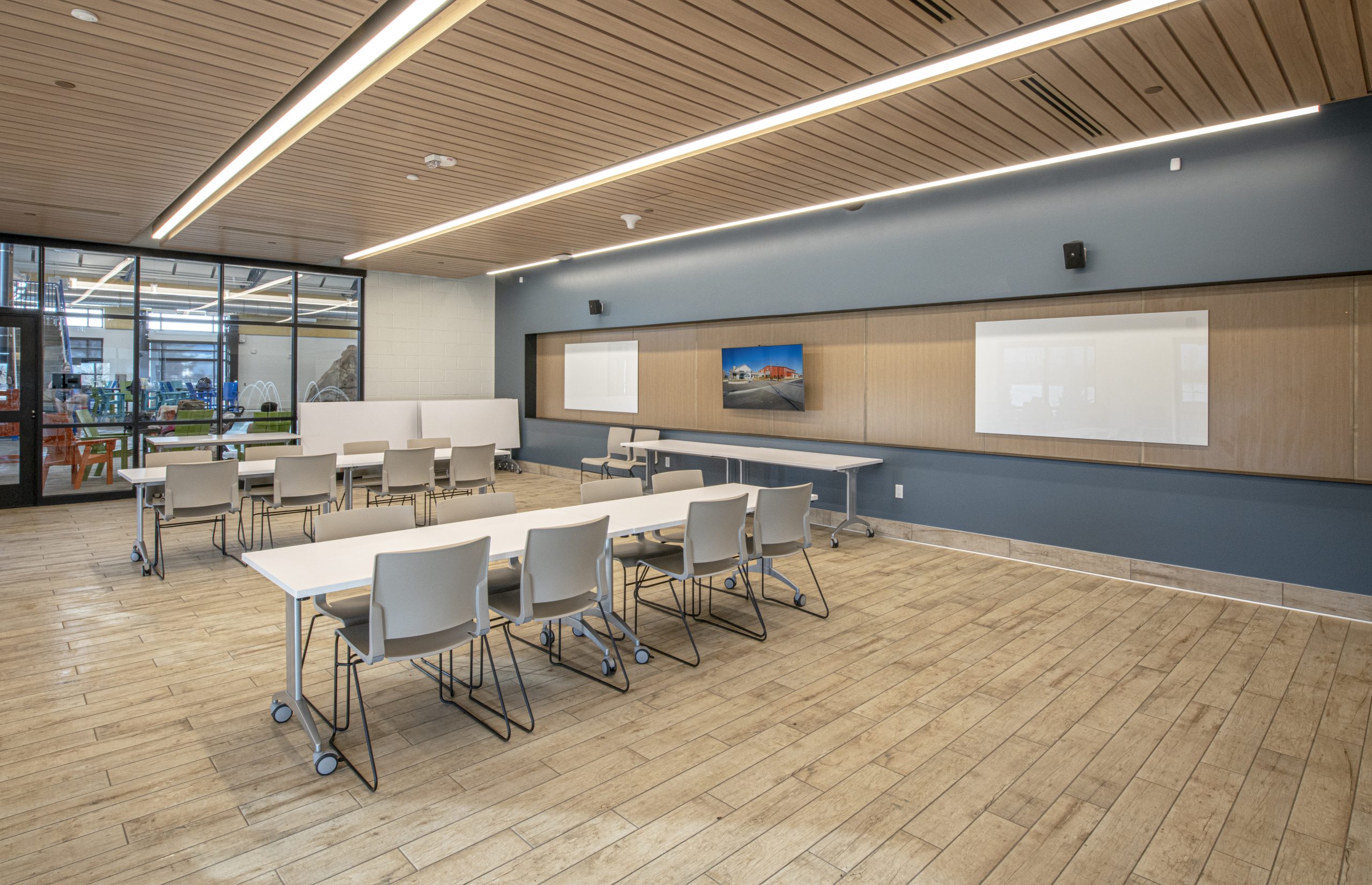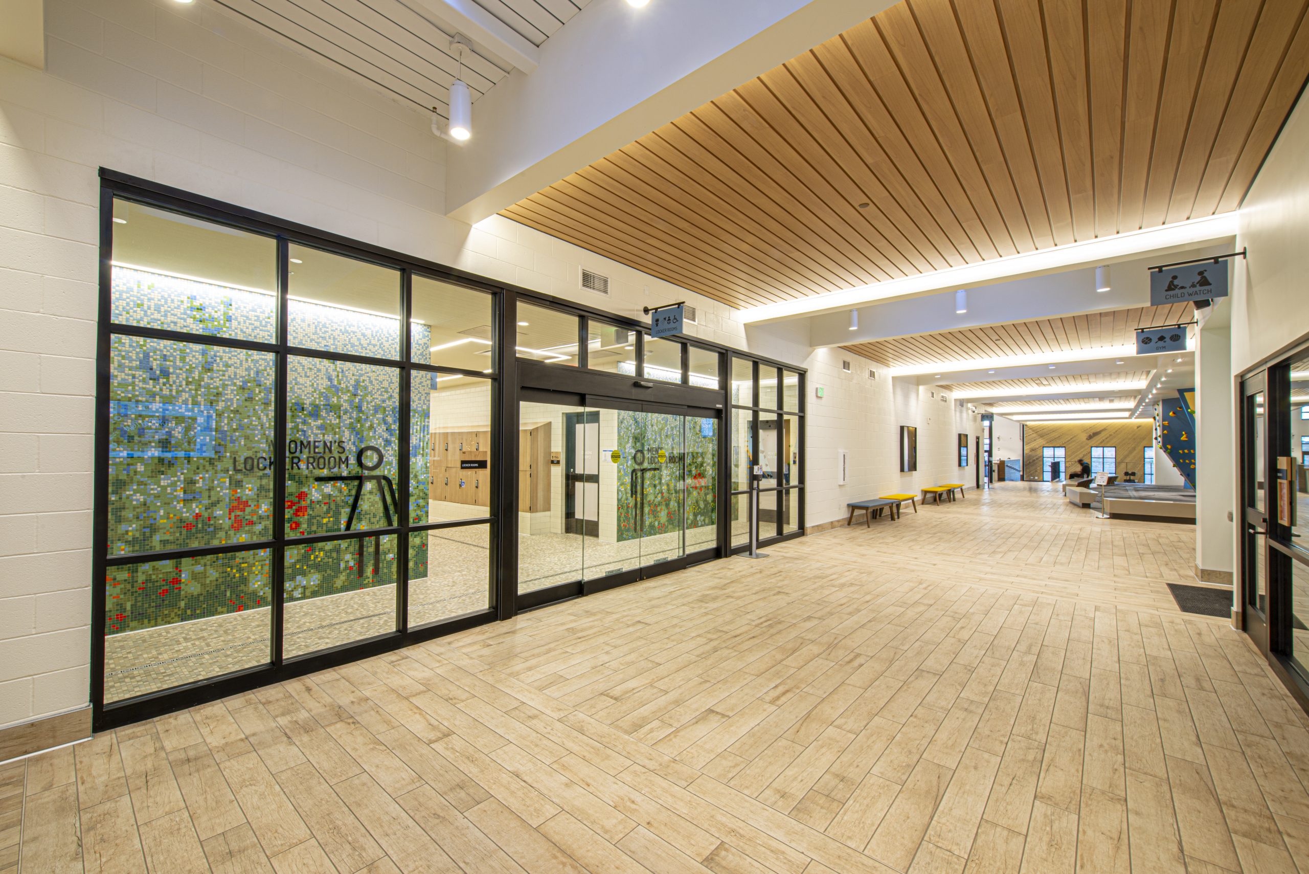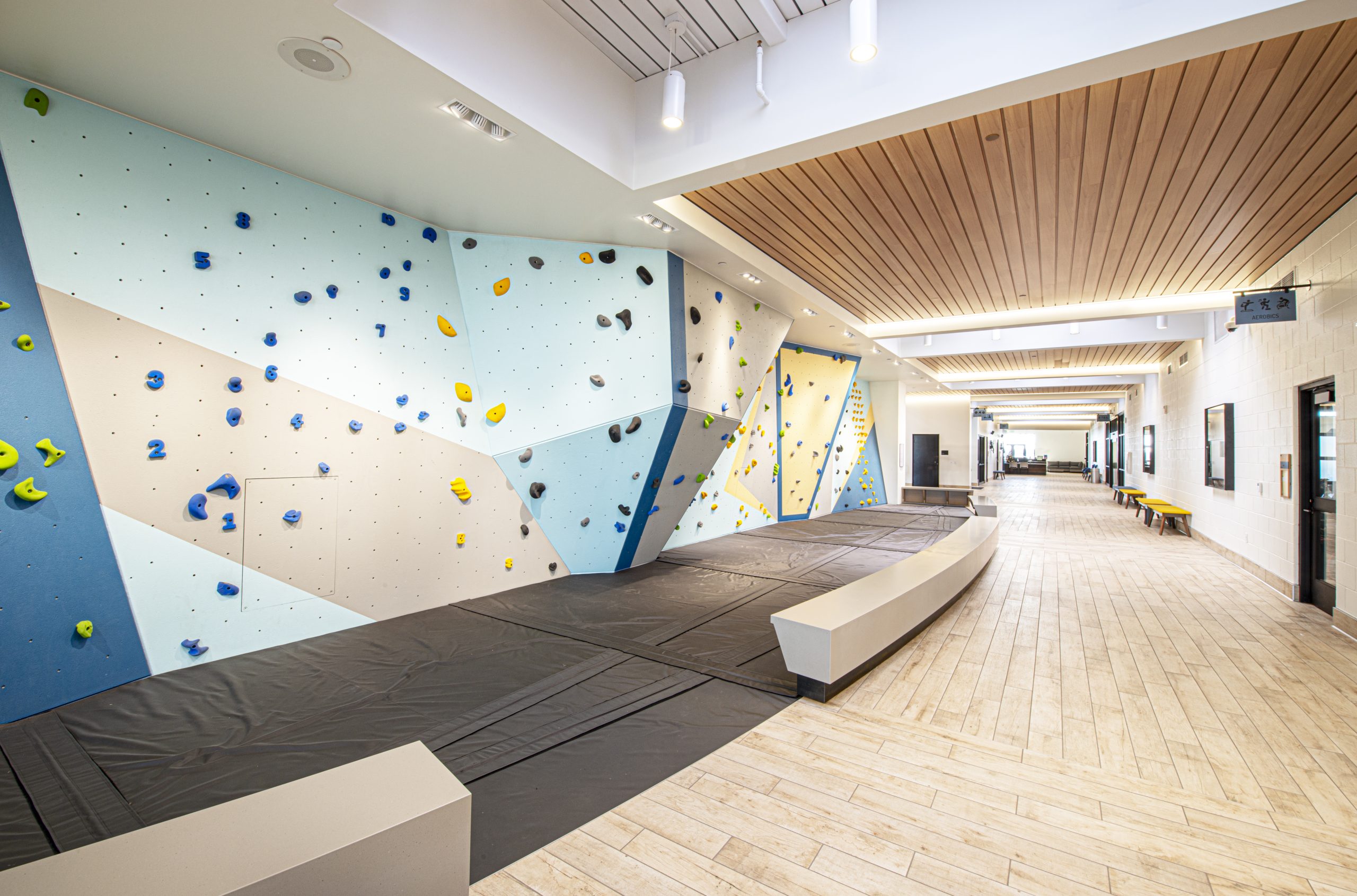 • 34,275 SF new recreation center and indoor aquatics facility, featuring gymnasium, fitness spaces, climbing wall, locker rooms, natatorium, child-watch area, and offices